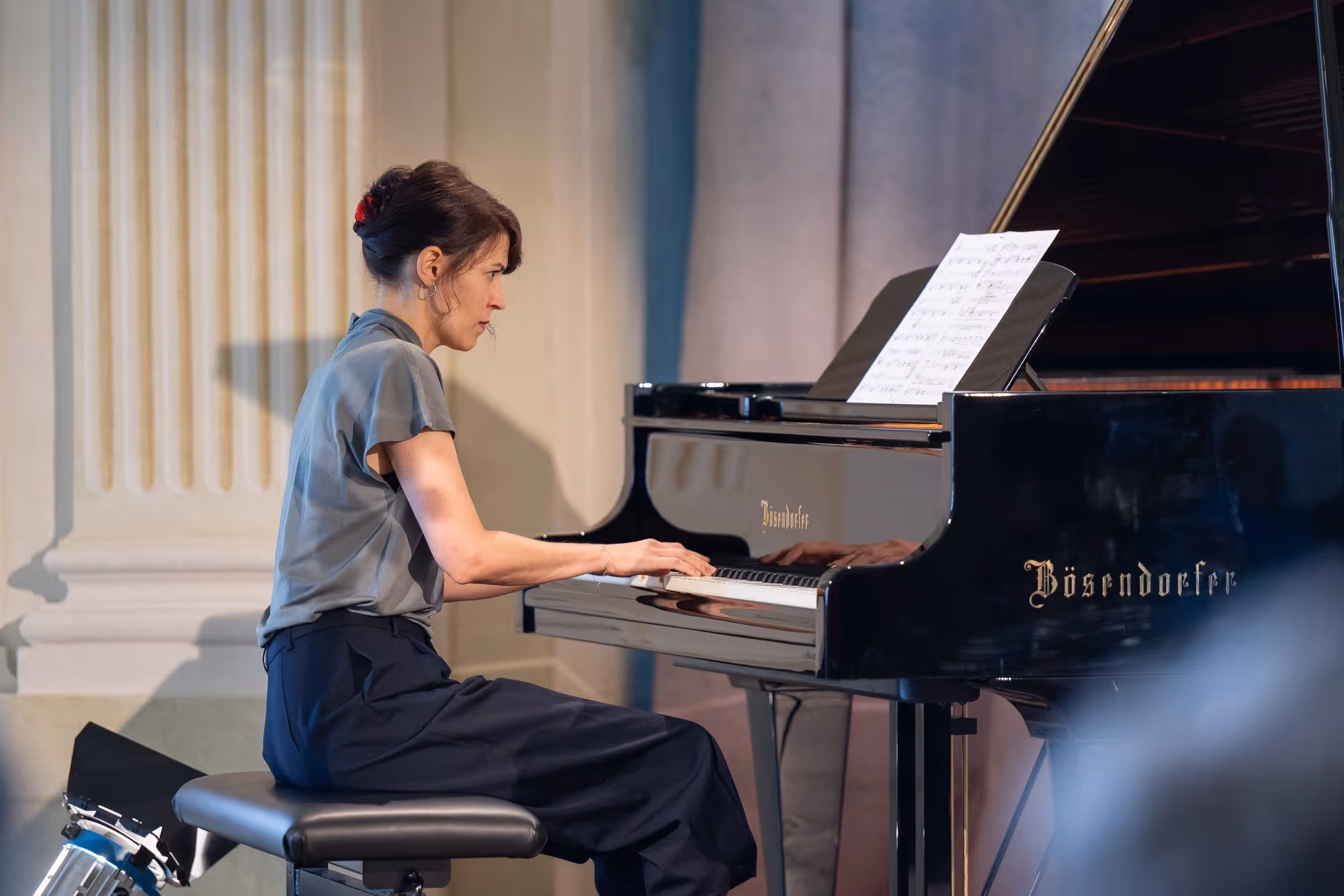 Zum stimmungsvollen Ausklang im Stiftspark gab es auch noch eine Uraufführung der Komponistin und Pianistin Verena Zeiner, die mit einfühlsamer Improvisation am Flügel das gesamte Festival begleitet und umrahmt hatte: Ihre Uraufführung “The language maker” für Trompete hüllte in der Interpretation von Lorenz Raab den Pavillon und die Zuhörer*innen in eine emotional berührende Klangwolke, die noch lange nachwirkte.