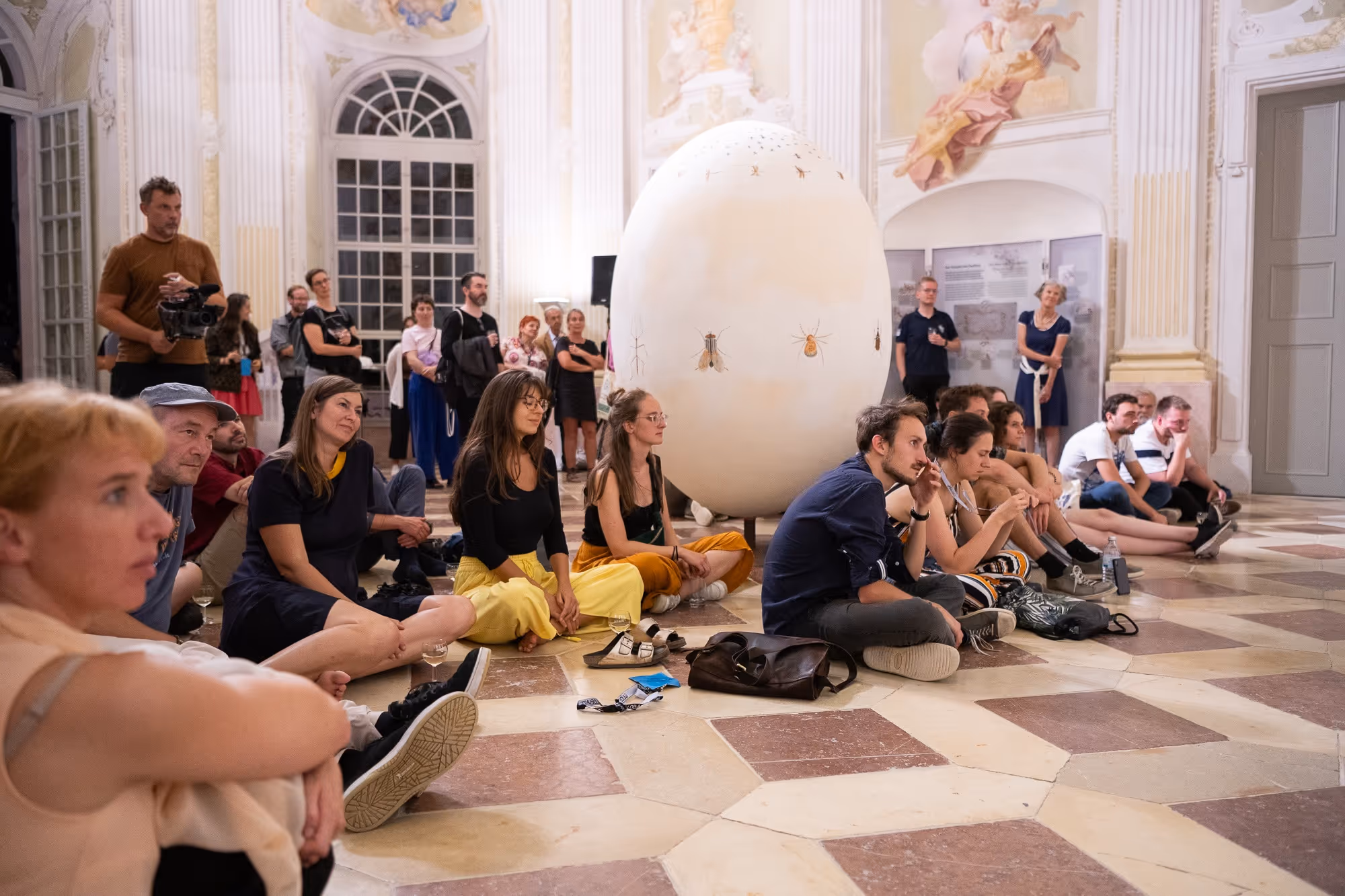 Das erste Highlight erwartete das begeisterte Publikum gleich zu Beginn am Donnerstagvormittag mit der Ausstellung „E LA NAVE VA“ des Künstlers und GoBugsGo-Gründers Edgar Honetschläger. Die Schau im Stiftspavillon steht noch bis 31. Oktober allen Besucher*innen der Stiftsgarten offen. Ein mit Insekten verziertes, überdimensionales Ei, verdorrte Sträucher und ein großes Papierschiff, das mit der Fracht eines verdorrten Fenchels über ein Federmeer gleitet, treten mit dem barocken Umfeld in kritischen Dialog und machen klar, so Honetschläger: „Was wir tun, wenn es um den Klimawandel geht, ist nicht genug. Auch die Kunst hat die Pflicht, über das reine Aufzeigen hinauszugehen und aktiv zu werden.“ Die Besucher*innen zeigten sich verzaubert und berührt von der Ausstellung.