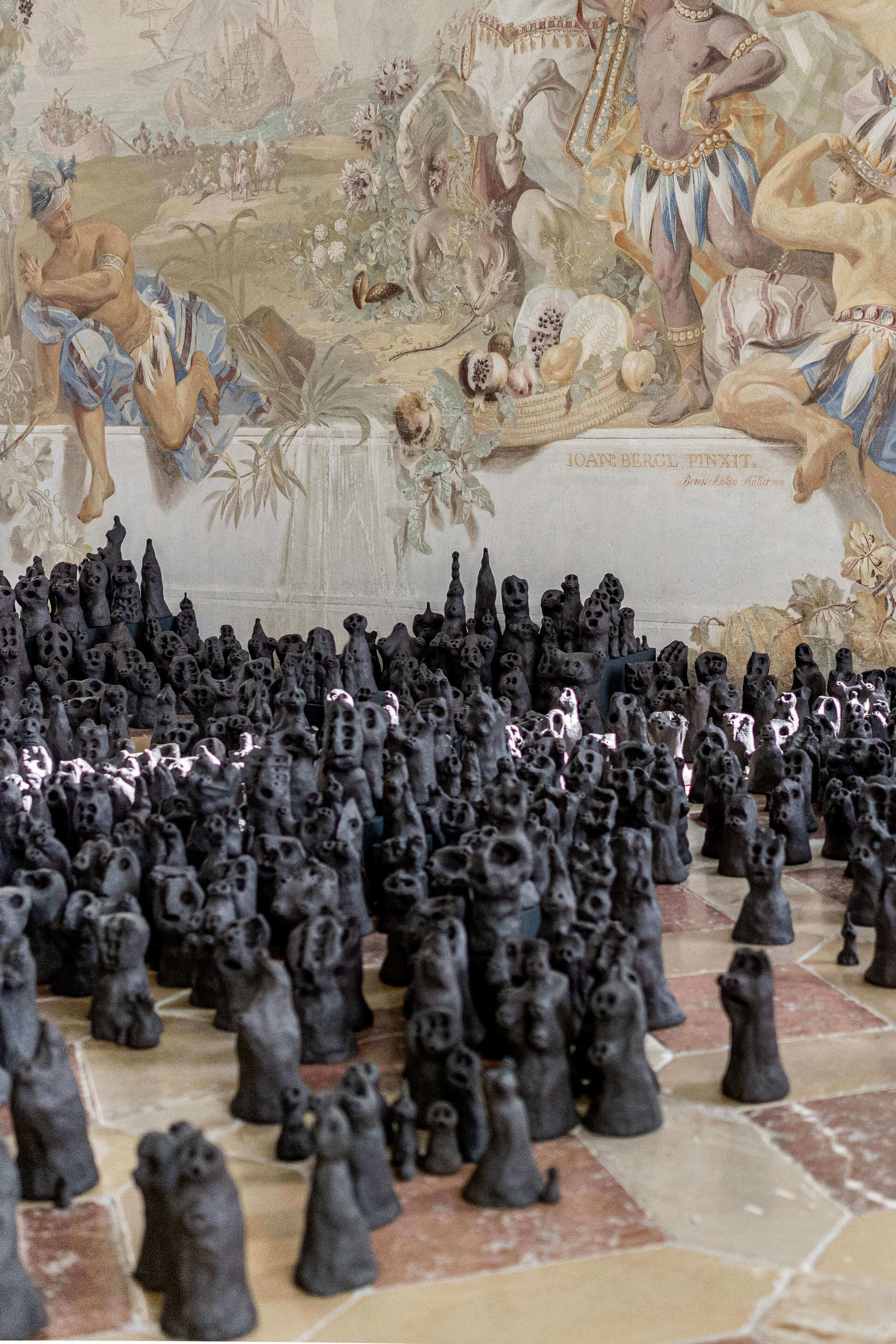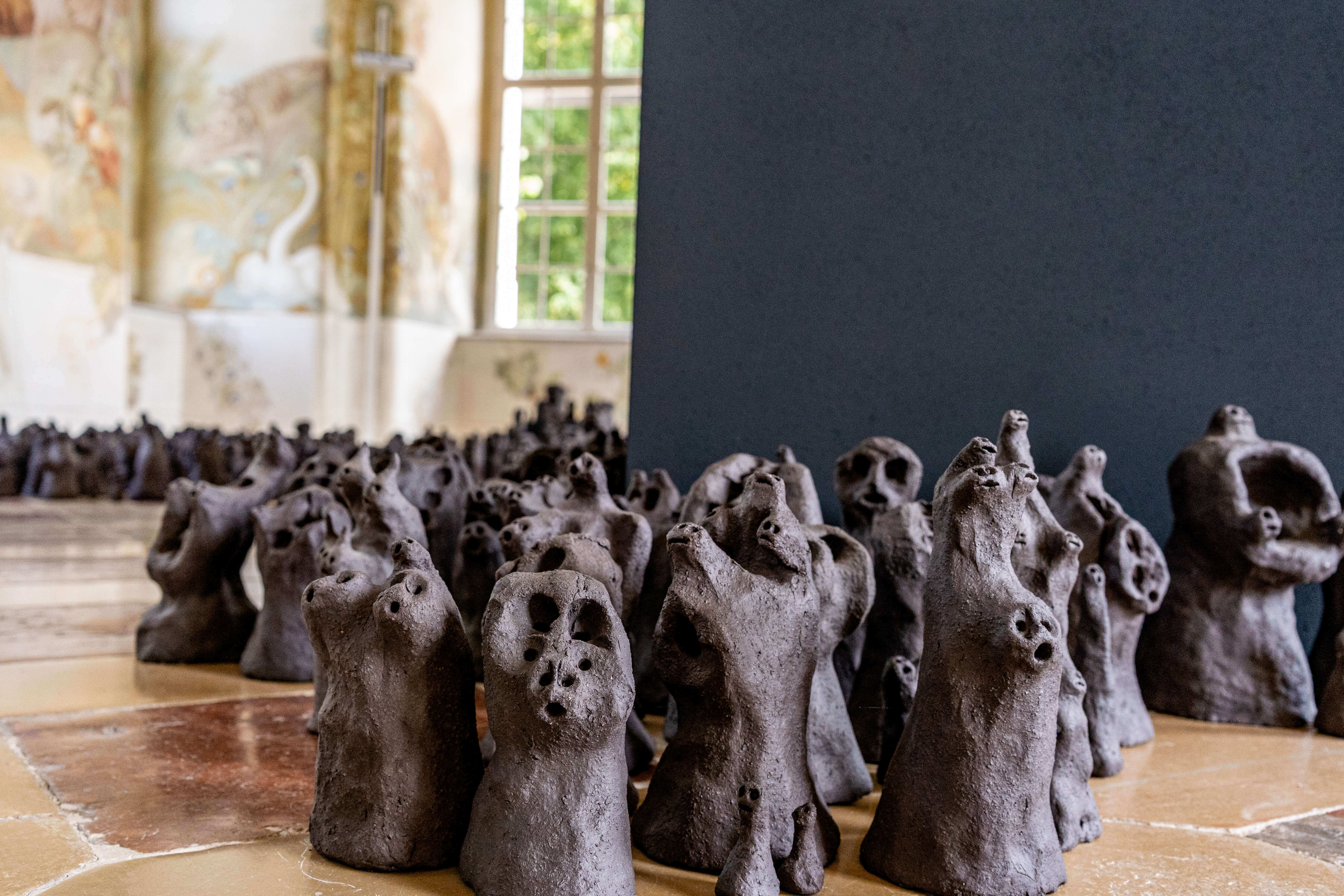 Bereits vor dem offiziellen Auftakt wurden Besucher:innen im Gartenpavillon des Stifts von einer besonderen Crowd empfangen: Franz Nigl ließ eine Horde archaischer Tonfiguren Nigls Crowd auf barocke Fresken treffen – auf Illusion, Erhabenheit und romantisierte Darstellungen ferner Welten. Nigls Figuren fordern Blickkontakt, ohne selbst zu kommunizieren. Sie stehen, verharren, blicken – reduziert, massiv, multipel.